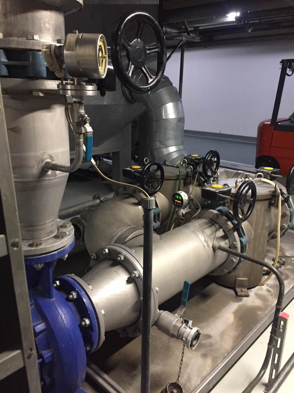 在過濾器前后均設(shè)置DN150蝶閥,以控制及檢修使用;