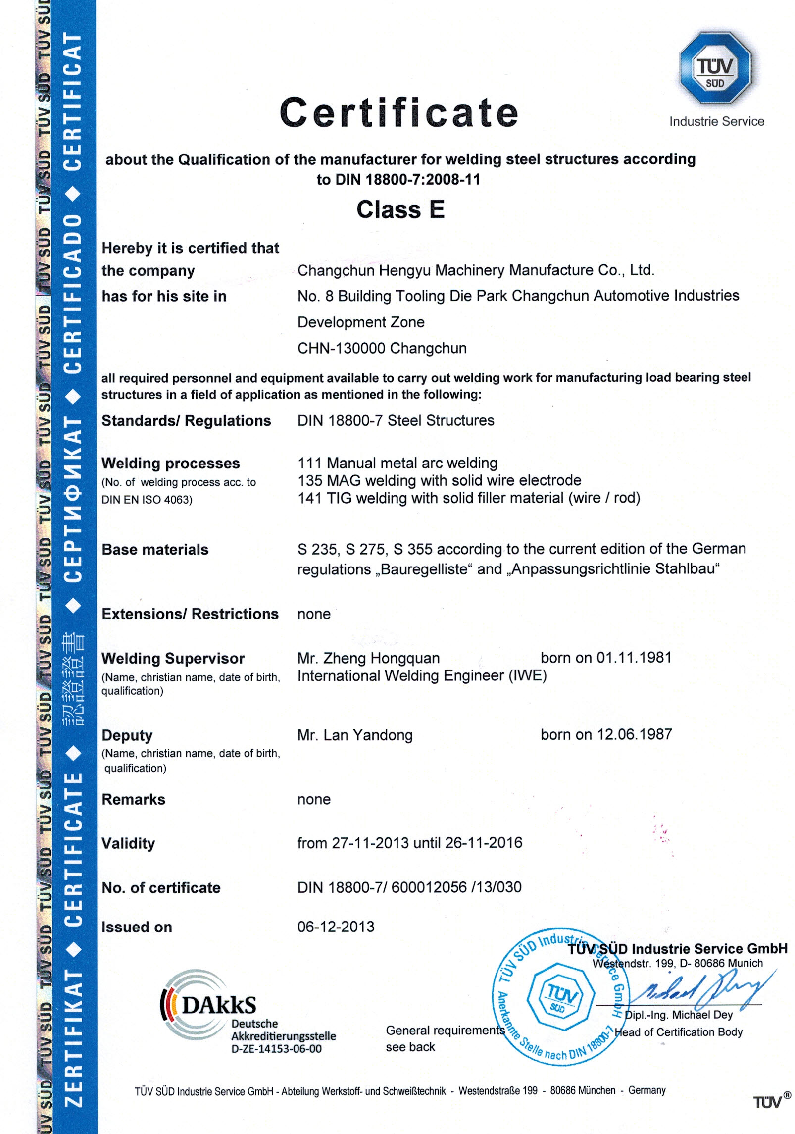 公司始終把產品質量放在第一位,分別在2010年取得了ISO 9001質量體系認證書,2013年取得國際焊接資質認證書DIN18800-7和機電安裝三級資質證書。先進精良的設備是滿足客戶多樣化需求的保證,目前公司擁有數控加工中心、車床、銑床、大型剪板機、折彎機及各種型號的焊接設備80余臺。